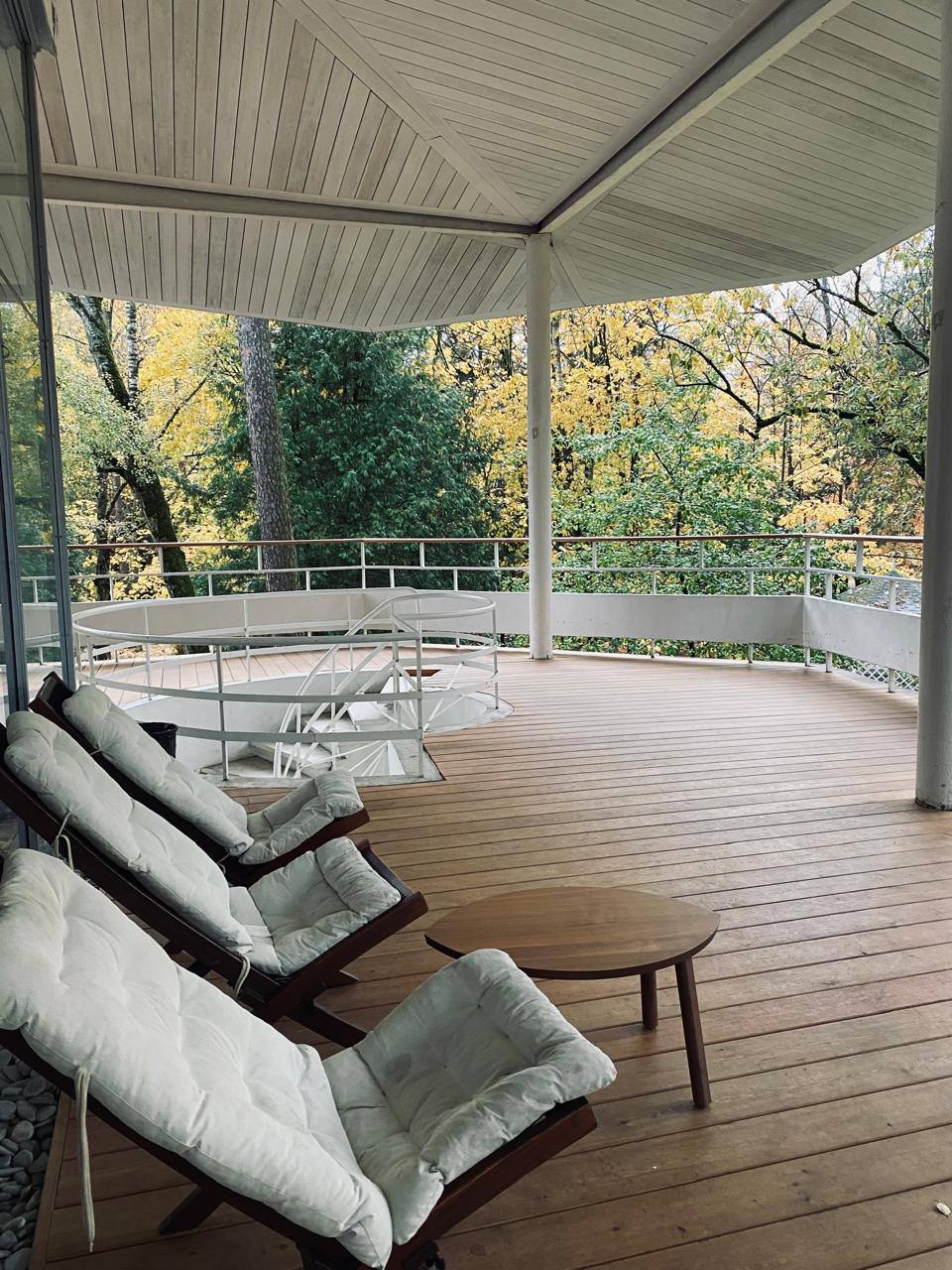 Внутри Дома писателей библиотека с уютными креслами, коворкинг, можно поиграть в шахматы или просто завернувшись в плед наблюдать за осенью с балкона.