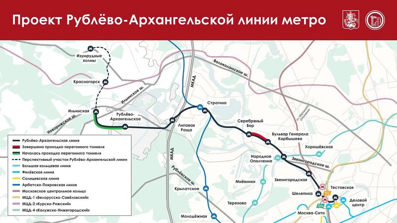 В этом году откроется первый участок Рублёво-Архангельской ветки метро