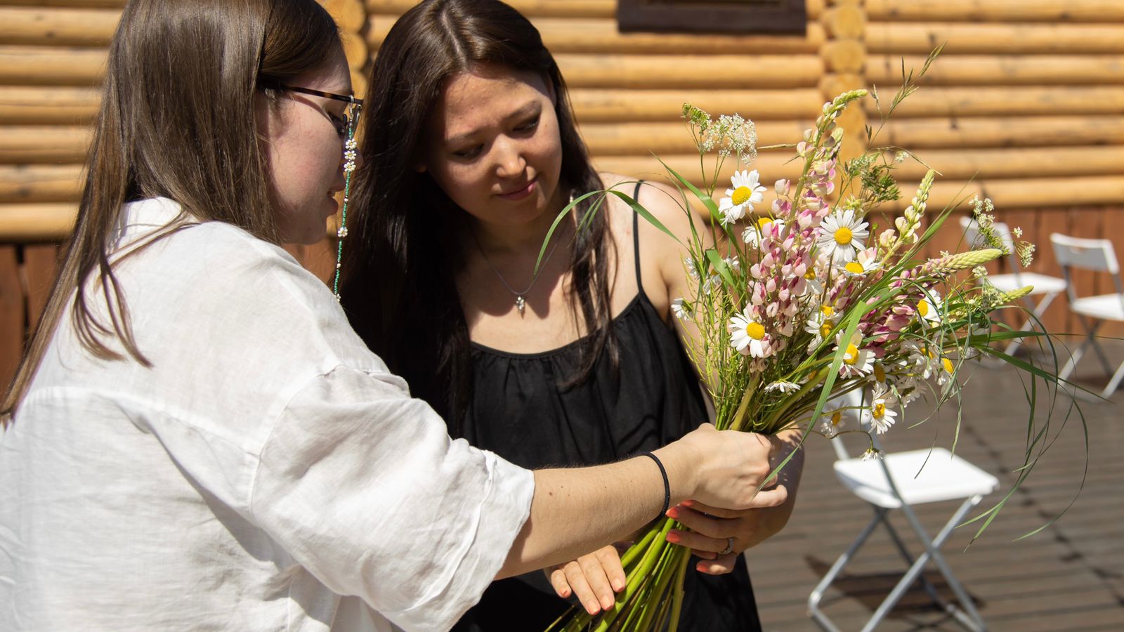 Поля наши богаты живописными цветами, у нас растут и люпины, и иван-чай, солидаго и ромашка. Мы в бане даже устраивали мастер-класс по созданию букетов из цветов, которые собрали в наших полях.