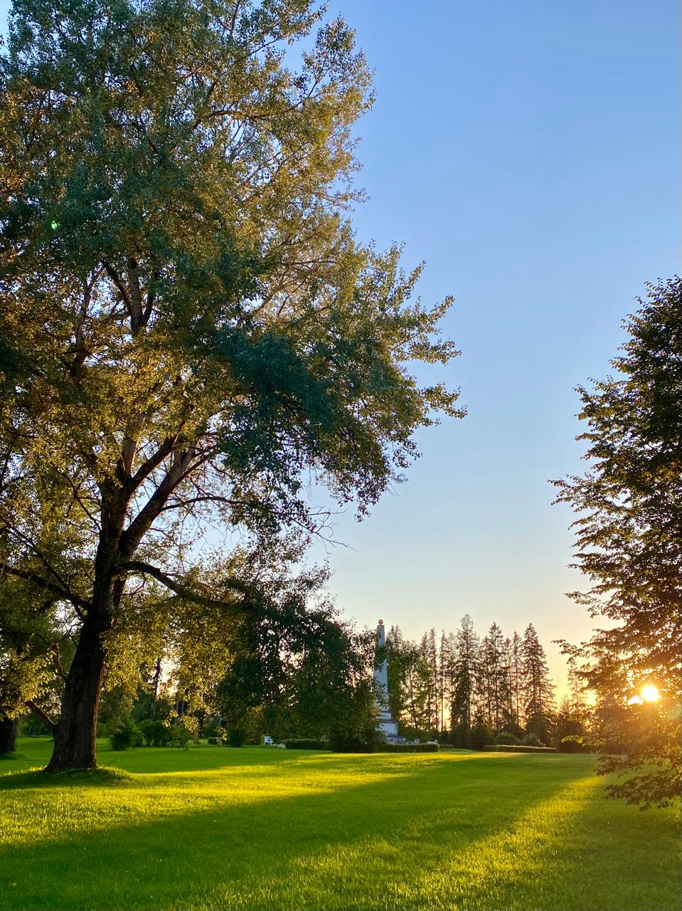 Гулять по парку - когда разъезжаются гости, вы оказываетесь в безлюдном парке, где между вековыми деревьями льется золотой свет заходящего солнца.