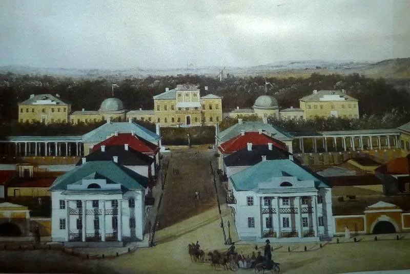 Усадьба была основана Степаном Куракиным, главный дом заложен в конце XVIII века. Куракин заказал проект известному архитектору Джакомо Кваренги. В 30-е годы XIX века дом достается уже Борису Алексеевичу Куракину - и он разворачивает там огромное строительство. Строится целый городок, появляется площадь, обелиск в память императора Александра I, готический замок. Сохранилась картина его сына, Алексея Куракина, с изображением этого городка, сохранились остатки многих фундаментов. Поразительно: сейчас это далекая деревня в полях, а тут какие-то улицы, проспекты, шлагбаумы… Он дал улицам звучные названия – "Александровский проспект", "Борисоглебский проспект", "Березовая аллея"…