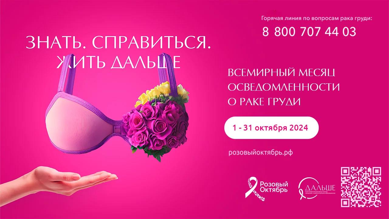 Специально к Розовому Октябрю фонд «Дальше» запустил бесплатную горячую линию по вопросам рака груди 8 800 707-44-03. Здесь можно получить информационную, психологическую и юридическую поддержку по вопросам диагностики, лечения и реабилитации при раке груди.