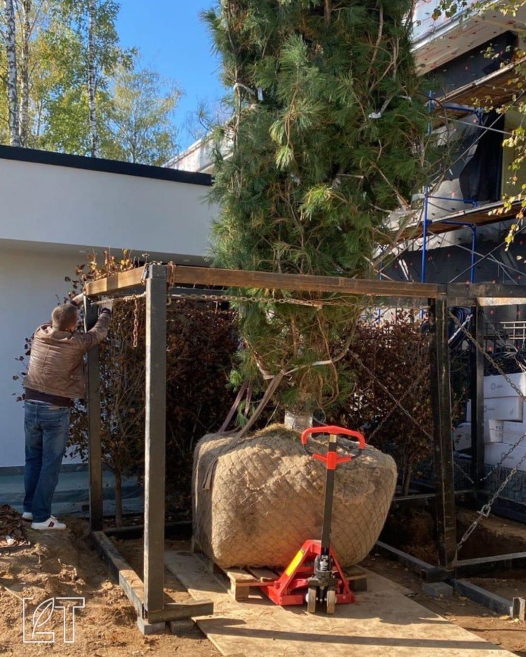 7️⃣ При посадке крупномеров максимально используйте технику: манипуляторы и краны, которые транспортируют растение к месту посадки и ровно поставят его в посадочную яму. Обратите внимание, закреплять растение можно только за ком. По возможности ищите операторов, умеющих работать с крупномерами.