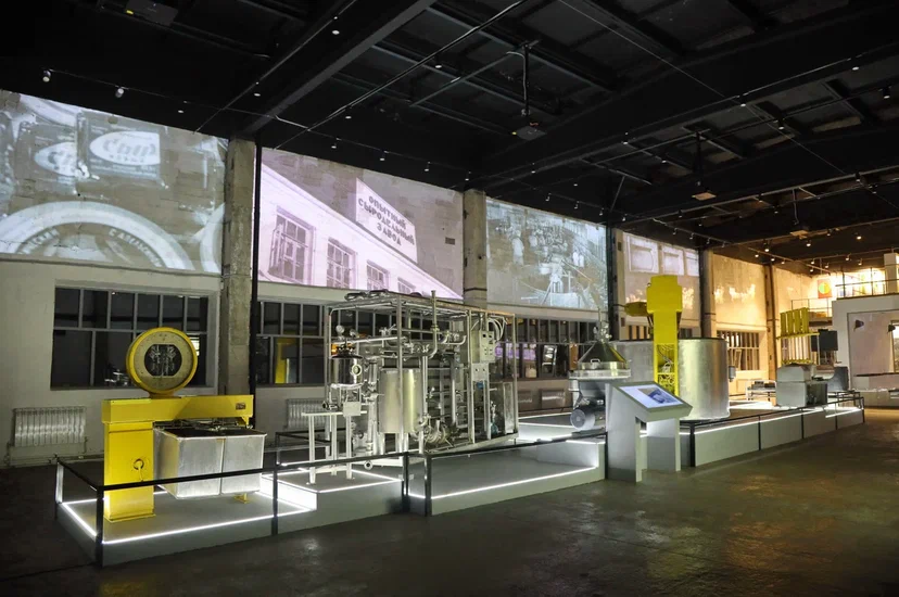 Но и старое оборудование не забыто — оно стало ретро-экспонатами музея. Например, у входа гостей встречает маслобойка производства 40х годов XX века, которая так похожа на космический корабль!