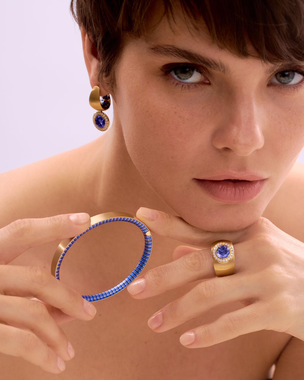 Одна из главных идей бренда — отсутствие изнанки — доведена здесь до абсолюта. Главная фишка украшений — цветная внутренняя сторона, поддерживающая сияющий камень. Коллекция представлена в большом разнообразии сочных цветов и орнаментов. У каждого свое настроение, но объединяет их сложная техника многослойной эмали, создающая 3D-эффект.