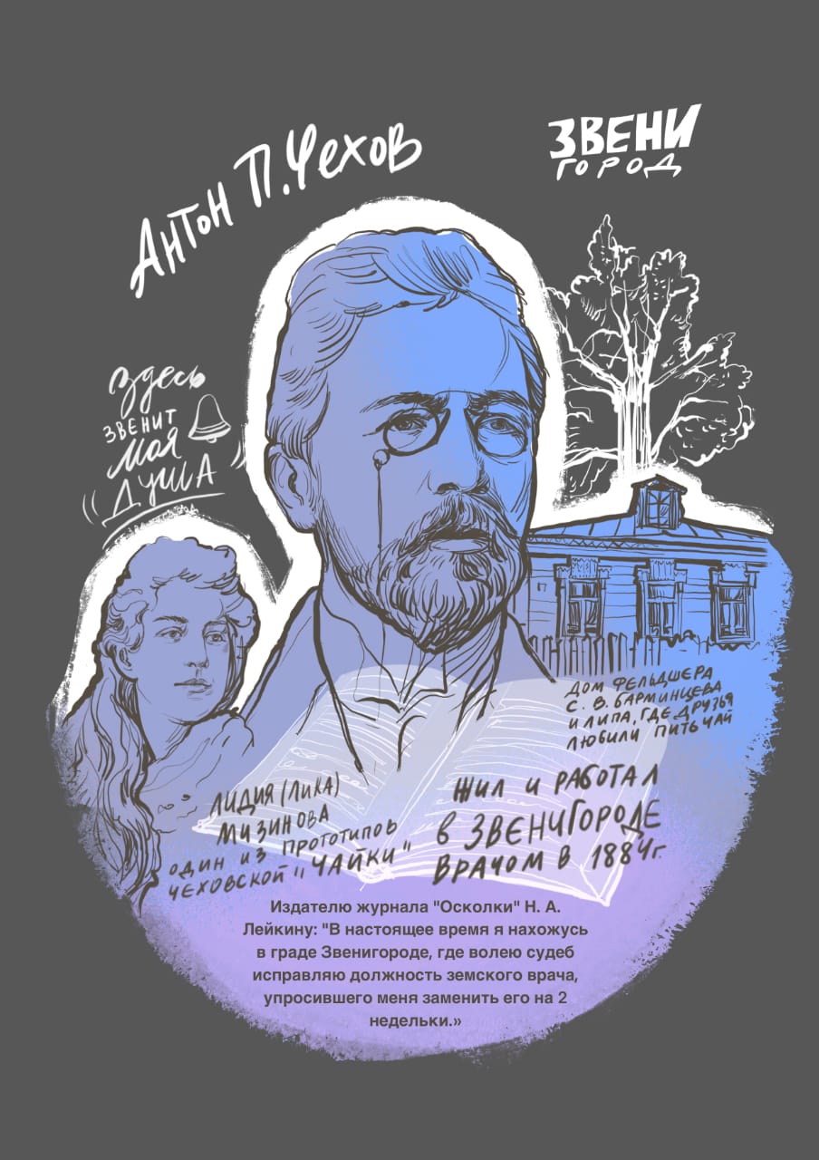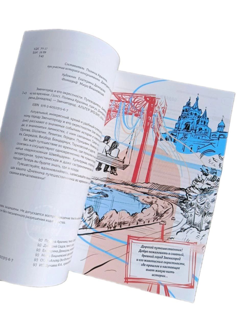 Моя давняя мечта была работать с книжной иллюстрацией, и снова проект нашел меня сам, а именно издательство. Как-то мои работы увидела Яна Поляруш, создатель Алтер Эго Бук. Она сама недавно переехала в Звенигород, занималась развитием издательства, и мы подумали о том, что в Звенигороде нет своего современного путеводителя. На сегодняшний день их издано уже два, в создании обоих я принимала участие. Потом появился проект «Книжная полка» совместо с tea.piterbook.com, это коробочка с чайными пакетиками, которые выглядят как обложки книг известных писателей.