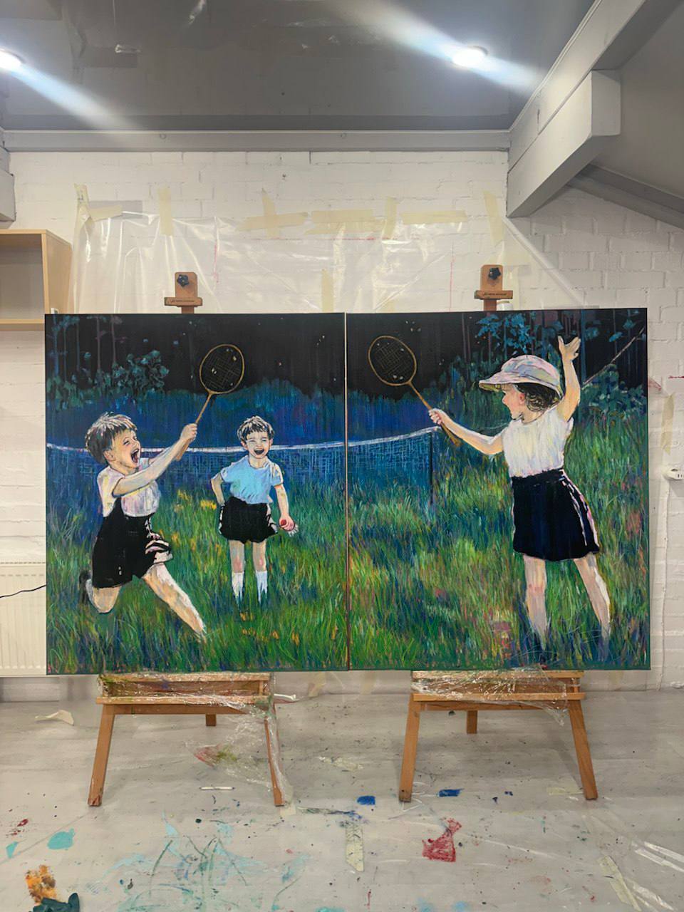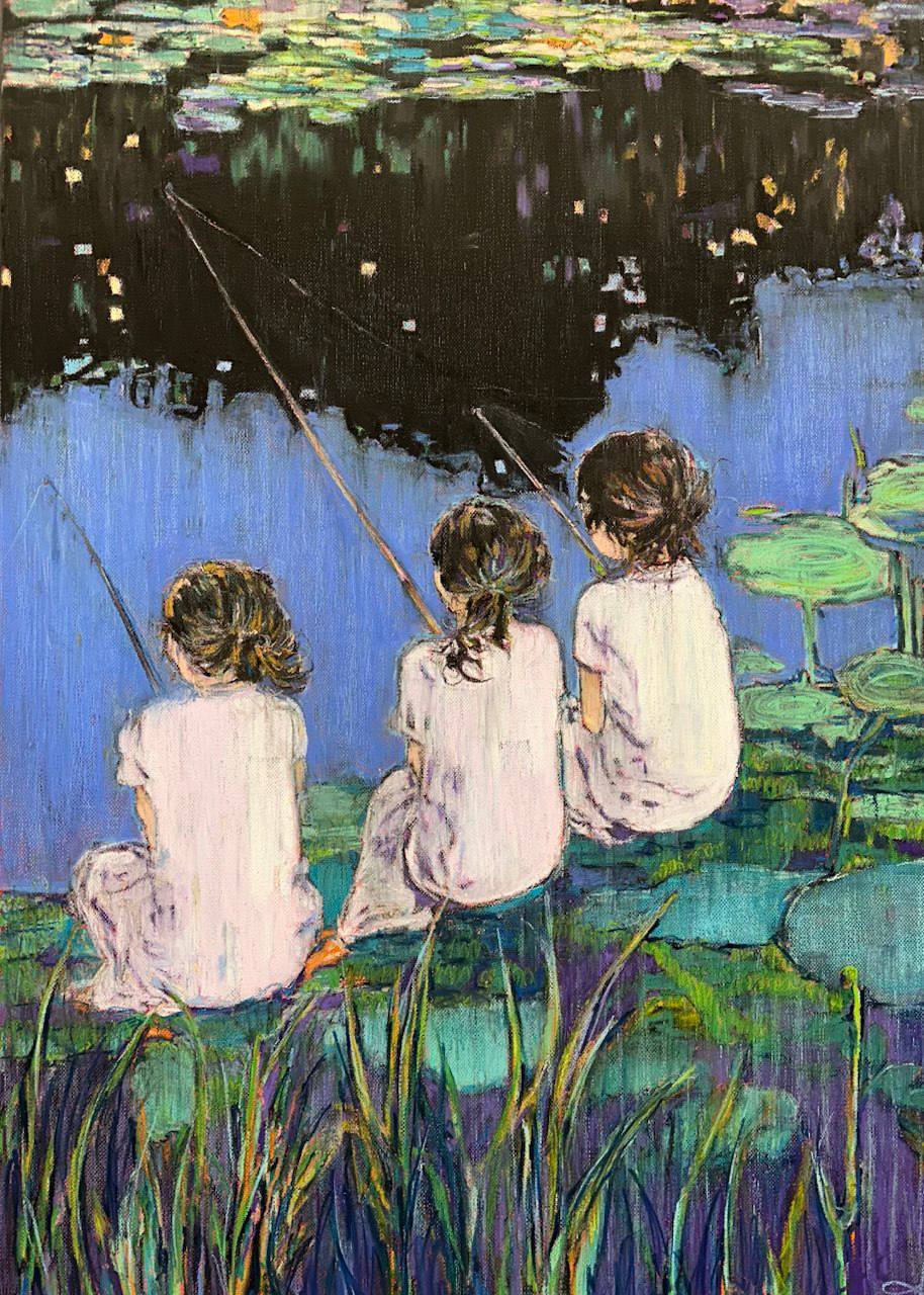 Работы Кеши Гусевой наполнены сочными цветами и динамичными формами и переносят нас в детство, которое всегда с тобой. Каждый холст – это сюрреалистическое путешествие в мир, где реальность переплетается с фантазией, а мгновение замирает. Ведь каждое воспоминание – это воспоминание последнего осколка памяти о событии.