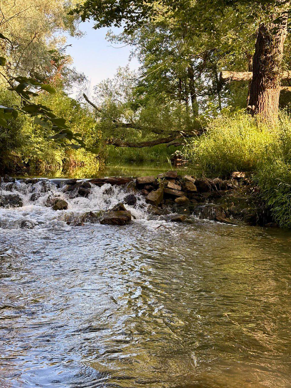 Водопад под стенами монастыря. Маленький рукотворный водопад на реке Сторожка. Для фотосессии выбирайте вечернее время, солнце красиво проглядывает сквозь ветви старых ив.