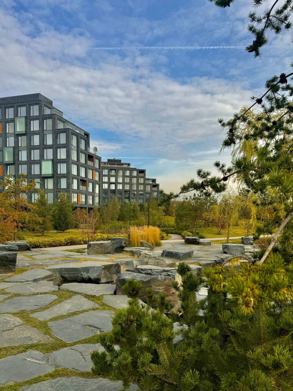 В СберСити открыта большая парковая зона, где комфортно гулять с детьми всех возрастов. Удобные и ровные дорожки для колясок и детских самокатов, лавочки для отдыха, панорамный ручей в окружении карельских валунов, виды на Москву-реку. С прогулки можно привезти богатую коллекцию шишек и разноцветных листьев для поделок.