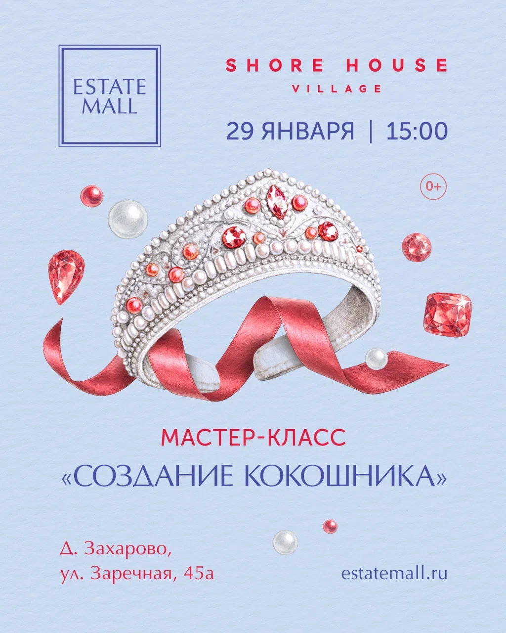 29 января в 15:00 в ресторане Shore House Village пройдёт атмосферный мастер-класс, где каждый участник сможет создать свой собственный кокошник — яркий, стильный и абсолютно уникальный.
