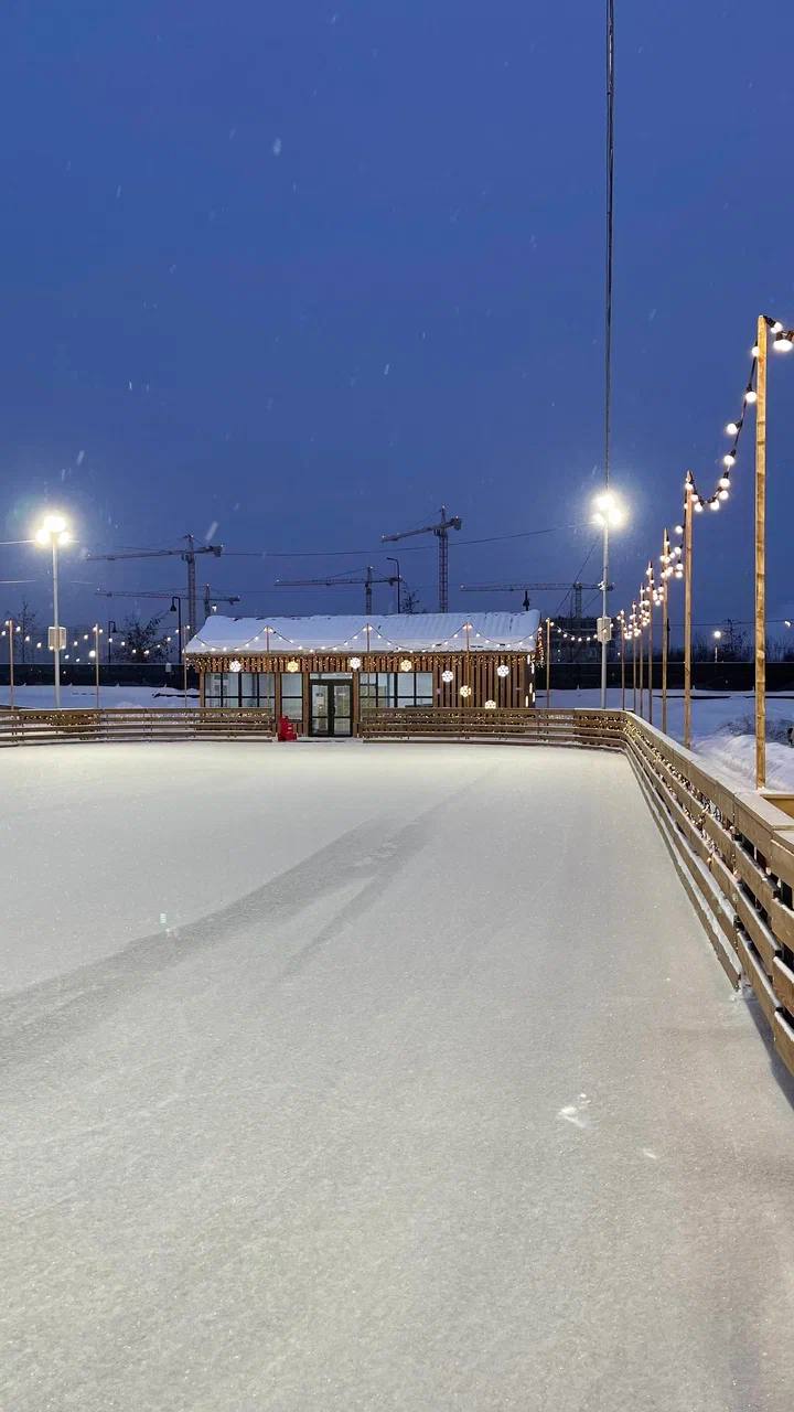 · Что входит: гладкий лёд, прокат коньков, тёплые раздевалки, работа фудтрака с горячими напитками и едой.