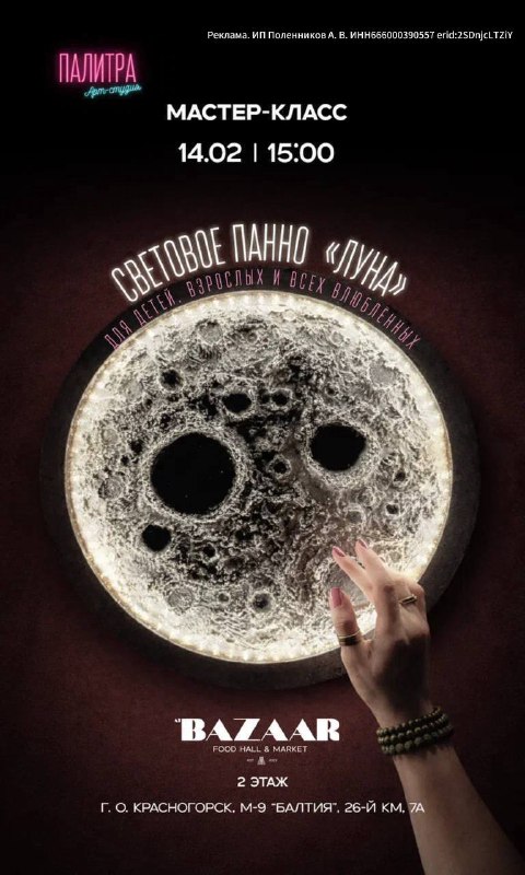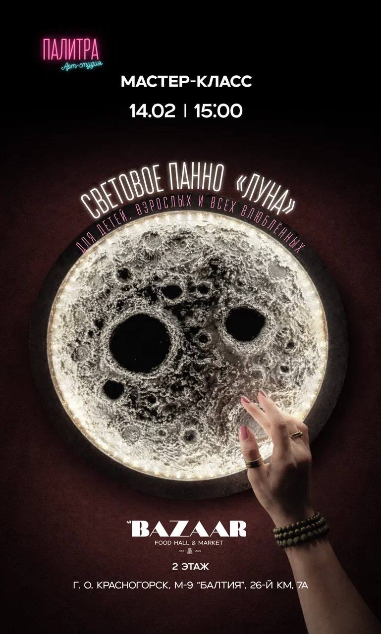 💖 14 февраля | 15:00. В этот день вдвоём погрузитесь в творческий процесс и сделаете одно прекрасное световое панно — вашу собственную сияющую Луну. Это не просто картина, а тёплый свет будущих вечеров и уникальное напоминание о вашем дне.